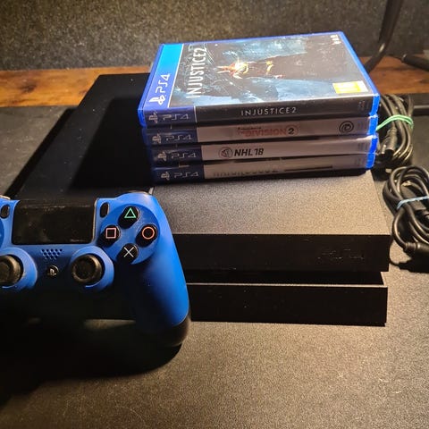 Sony Playstation 4 spelkonsol svart med handkontroll och spel