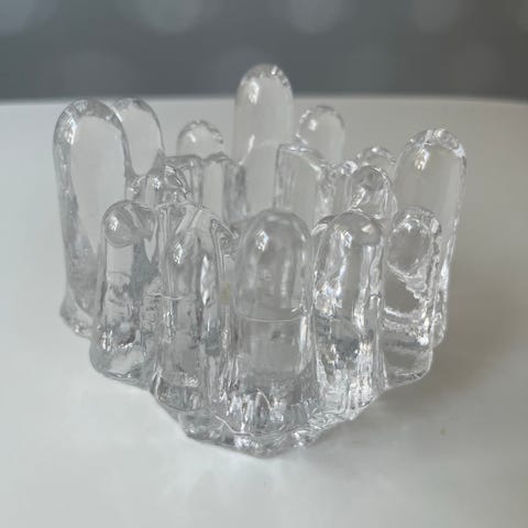 Vacker ljuslykta ”Sunflower” av Göran Wärff för Kosta Boda, lanserad 1974. Klar kristallglas i organisk naturlig form, höjd 92 mm och vikt ca 600 gram. Kan skickas med PostNord