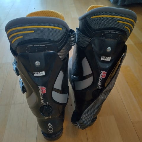 Salomon pjäxor i svart med grå och gula detaljer. Modellen har flera justerbara spännen framtill och vadderat innerskaft för bättre passform och stöd. Passar för alpin skidåkning. Använt skick med lite slitage här och där men håller garanterat många säsonger till.