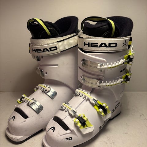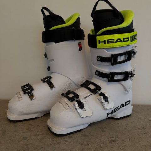 Head alpina pjäxor i grå och röd färg. Modellen har fyra spännen framtill för stabil åtdragning samt rem upptill för enklare hantering. Passar för alpin skidåkning. Ytterskal i hårdplast med vadderat innerfoder i rött tyg för ökad komfort. Storlek är 25 -25,5