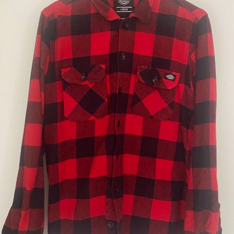 Denna snygga skjorta i röd och svartrutigt är perfekt för både herr och dam. Storleken är M för herr och L för dam. Skjortan är i mycket gott skick och säljs för 100 kr.