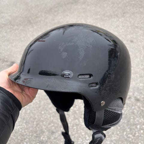 Barnhjälm i lila färg med turkosa remmar och detaljer. Justerbar hakrem med snabbspänne. Hjälmen har ventilationsöppningar upptill och fäste bak, till exempel för goggles eller liknande. Avsedd för barn och kan användas för aktiviteter där hjälm krävs, beroende på godkännanden och märkning på insidan av hjälmen.