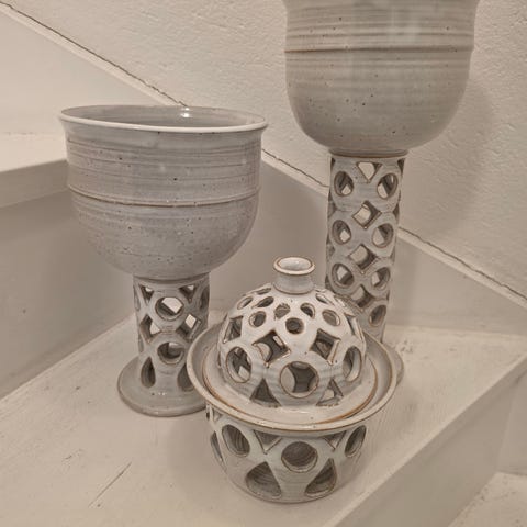 Alla är i väldigt bra skick enbart den ena vasen har ett litet nagg vid foten se bilder