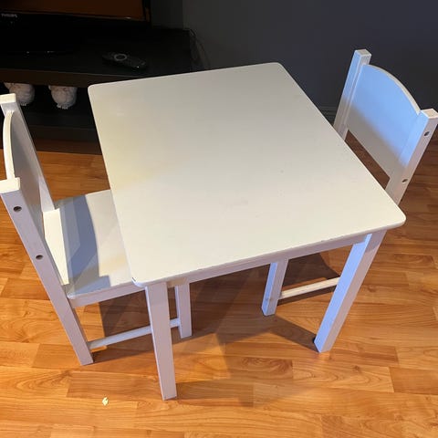 Säljer ett fint barn matbord med 2/st stabila stolar i mkt fint skick för 190 kr.