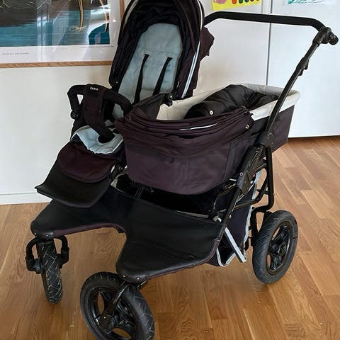 Säljer vår brio duovagn då barnen blivit stora. Fin liggdel i lila med tillhörande vindskydd. Ventilationsmesh i suffletten. Går att sätta liggdelen både bakåt och framåt i chassit.