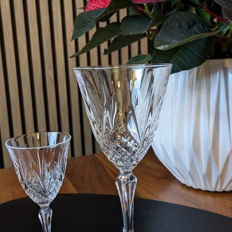 Klassisk, tung fot, slipad dekor och den där ljuvliga klanger som bara äkta kristall kan ge.