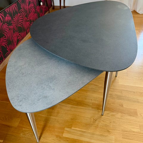 Tre stycken soffbord från Kleppe i modell Katrine med ben i borstat stål.