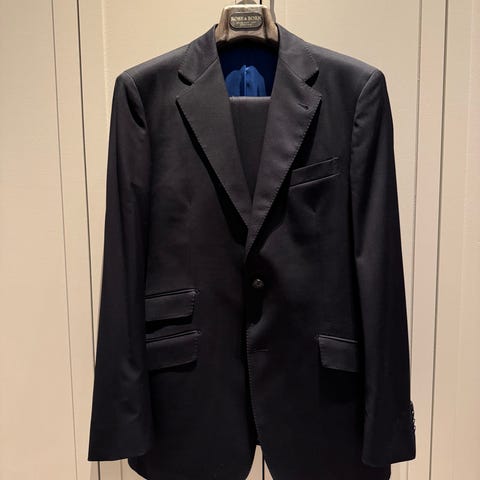 Kavajen är sparsamt använd och i mycket gott skick. En klassisk modell med tidlös passform och hög materialkvalitet, typisk för Rose & Borns hantverk och detaljfokus.