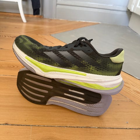 Adidas Adizero Boston 10 löparskor i storlek 46. Skorna är främst avsedda för löpning. Ovandel i lättviktigt material med stödjande partier och snörning. Yttersula med greppanpassat mönster. Färgkombination i svart, grått, vitt och gult. Modellen är utformad som herrsko och passar för löpträning på väg eller liknande underlag.