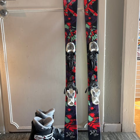 Twintip slalomskidor k2 125 cm med passande pjäxa från Salomon 24/24,5 och hjälm från Blitz