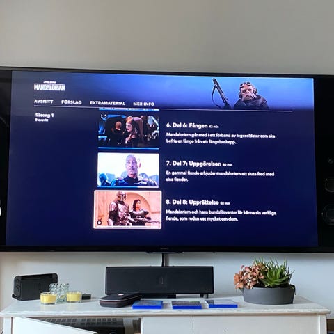 Blueray spelare och väggfäste som redan sitter på tvn följer med.
