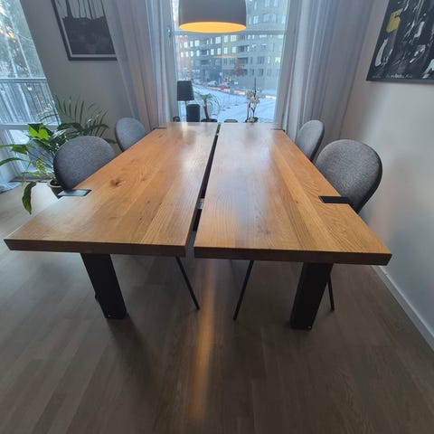 Säljer ett handgjort matbord i massiv ek av mycket hög kvalitet. Bordet är stabilt, rejält och byggt för att hålla i många år framöver.
