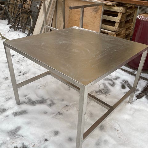 Stabil arbetsskiva passar som bordsskiva eller arbetsyta i exempelvis hobbyrum eller garage. Skivan är lite bågformad då den varit utsatt för tungbelastning.