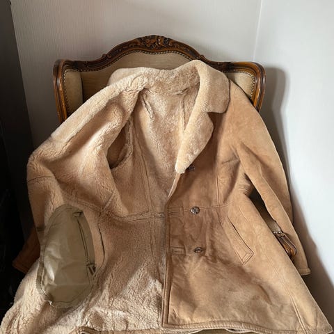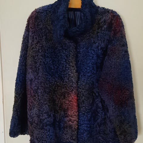 En ateljésydd äkta fårskinnsjacka i svart och grå färg. Tillverkad i Sverige.