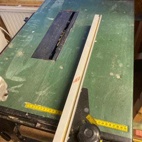 Rullbock stativ i metall för stöd vid trä- eller metallbearbetning. Består av en robust ram med rullande cylinder för att underlätta matning av material. Två lösa aluminiumprofiler ingår som kan användas som anhåll eller stöd. Lämplig som tillbehör till såg, hyvel eller annan stationär maskin där längre arbetsstycken behöver stödjas under arbetet. Märke och exakta mått är inte angivna.