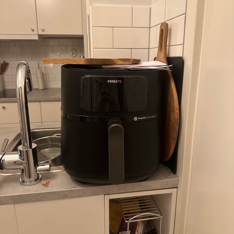 Ny och oanvänd airfryer från Rusta med dubbla lådor och digital styrning. Fick den på garanti men hade redan köpt annan. Nypris 1399kr