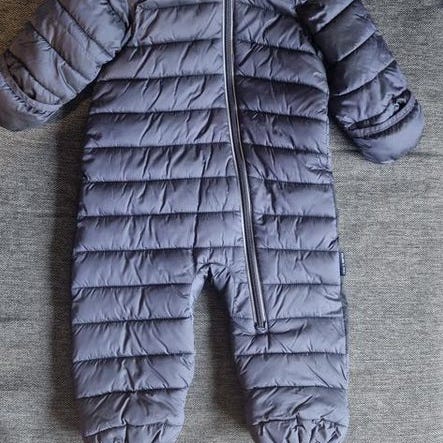 Polarn O. Pyret overall för barn i storlek 68. Overall i grå färg, tillverkad i polyester med vaddering och quiltat mönster. Modellen är unisex och har huva samt dubbla dragkedjor framtill för enklare på- och avklädning. Insidan är fodrad med mjukt tyg med mönster. Passar som ytterplagg för mindre barn.