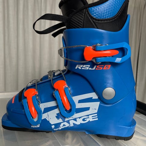 Alpina pjäxor för barn i välanvänt men fullt fungerande skick. Innerskon har ett litet fönster över tån så att det är lättare för en förälder att se om skon passar.