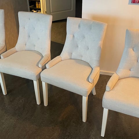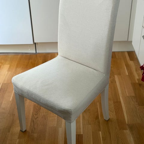 6 st matbordsstolar stoppade med rygg. Stolarna säljs med beiga överdrag.