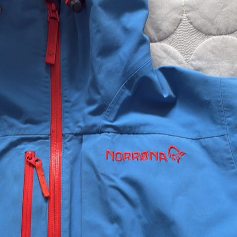 Norrøna Lofoten W Primaloft Jacket skidjacka i storlek S.. Modellen är i Gore Tex och isolerad med Primaloft och har fast huva. Passar som ytterjacka för skidåkning och andra utomhusaktiviteter. Dammodell strl Small, normal passform. Orange färg.