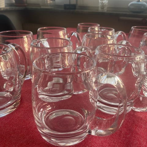 Ölsejdlar ”Dragon”med handtag i klarglas. Setet består av flera robusta glas med tjock botten och rundad form. Passar till öl vid vardag och middagar. Glasen är genomskinliga och har integrerat handtag för stadigt grepp. 6 st. Höjd 12 cm. Dessa 6 har en svag dimmig ton i glaset.