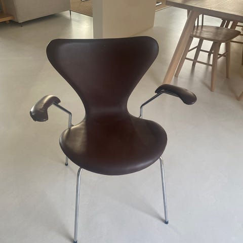 Original Fritz Hansen 3107 Sjuan stol säljes i Wild Walnut skinn och svart ask.
