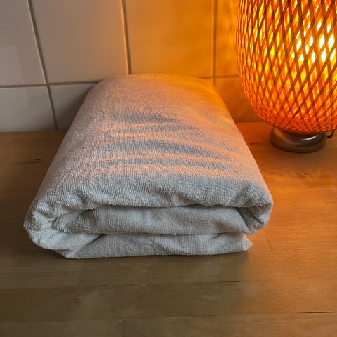 madrasskydd eller lakan tillverkat av frotté, ett material med öglelugg som ger en mjuk och absorberande yta. Det används främst för att skydda bäddmadrassen mot fukt, smuts och slitage, vilket förlänger sängens livslängd. 85x73 cm. Frotté på ena sidan plast på den andra.