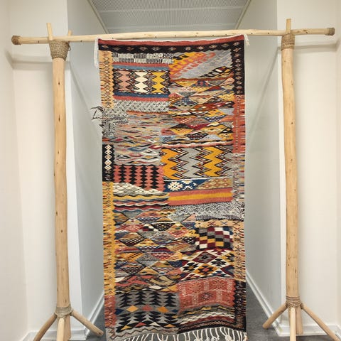 Denna handknutna Ait Ougherda-matta är ett unikt mästerverk av traditionellt hantverk. Varje tråd är noggrant vävd för att skapa komplexa, geometriska mönster inspirerade av naturen och kvinnorna i bergen där mattan har sitt ursprung. Naturlig ull i levande färger kombineras med silkestrådar som ger en subtil lyster och extra djup. Mattan är helt unik – ett totalt one of a kind-exemplar som inte finns någon annanstans i världen. En exklusiv och tidlös del av heminredningen.