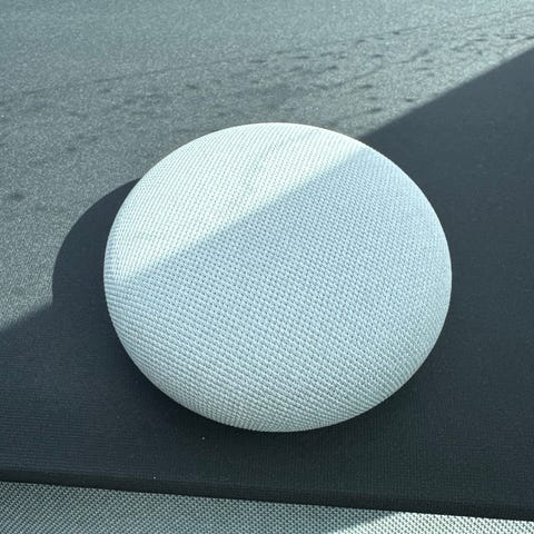 Generation 2 av Google Nest Mini med strömadapter och originalkartong