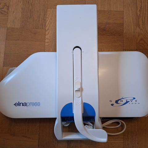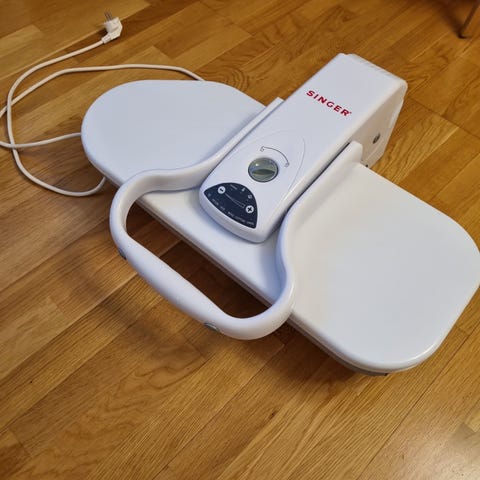 Miele mangelmaskin i vit färg. Elektrisk bänkmangel med pressarm och blått mangelbordsöverdrag. Utrustad med kontrollpanel på ovansidan samt strömkabel. Bruksanvisning medföljer enligt bild. Lämplig för mangling av exempelvis lakan, dukar och andra textilier i hemmet .FUNKAR