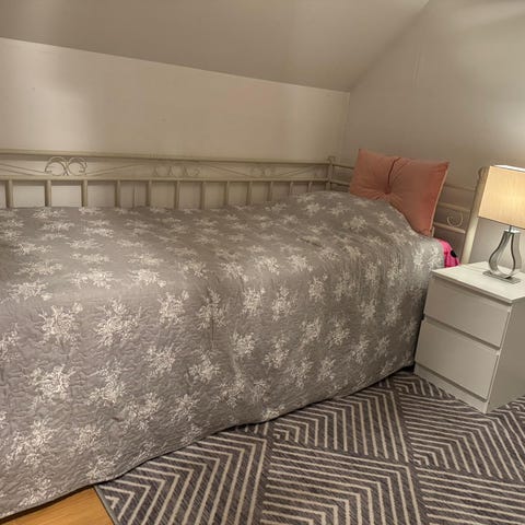 Perfekt växa säng! Kan justeras i 3 olika längder från 127 cm - 206 cm. Det följer med madrass som är anpassningsbar utefter den längd man väljer att ha.