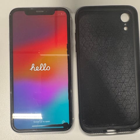 iPhone Xr 64GB, bateri 82%. Hel och fin, allt fungerar som det ska. Medföljer ett skal som ser ut som iPhone 12/13 med kantiga sidor, värde 200kr.
