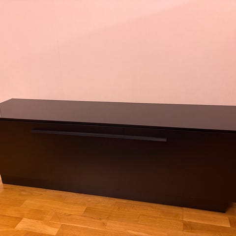 Tv-bänk svart och trä med lådor och öppet fack