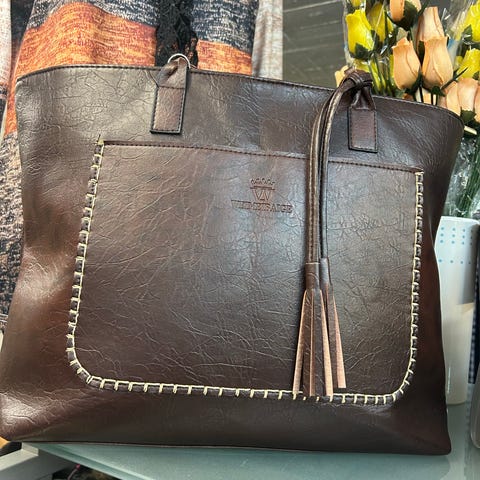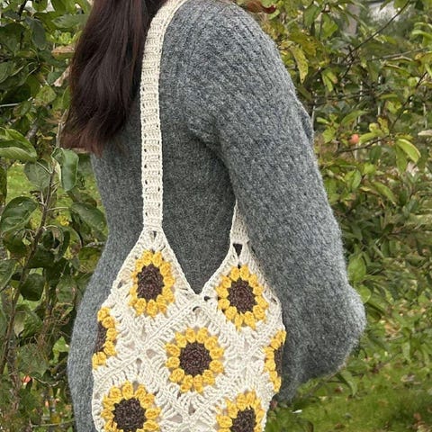 Handvirkad unik söt väska för kvinna, tjej eller barn i rosa bomullsgarn med virkade mormors rutor med fluffig mitt på alla rutor. Väskan har två mindre axelremmar i samma virkade material och väskan är fodrad invändigt med ljust tyg så att inte småsaker ska falla ut. Passar för vardagsbruk och lättare personliga tillhörigheter. Mått ca 25x25 cm.