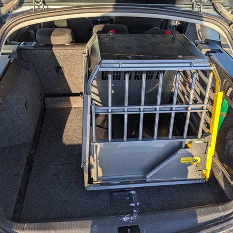 Denna bur kan passa till en eller två mindre hundar, mankhöjd 38.