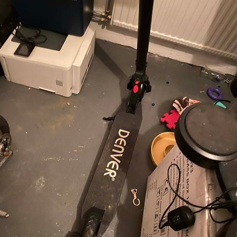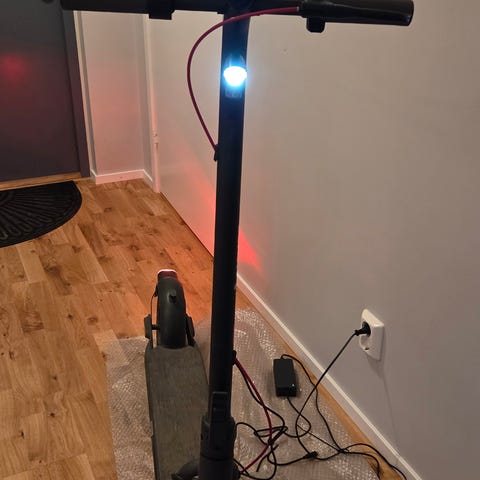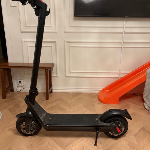 Razor E100 elsparkcykel i grå färg. Modellen har elektrisk drift och är utrustad med fotplatta med Razor-logotyp samt framgaffel och styre i metall. Passar för kortare transporter och fritidskörning på jämna underlag. Drivs av elmotor med kedjedrift och har framhjul och bakhjul anpassade för asfaltytor. Laddare och batteri ingår normalt till denna typ av modell, kontrollera vad som följer med i annonsen.