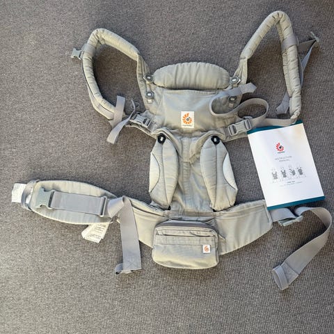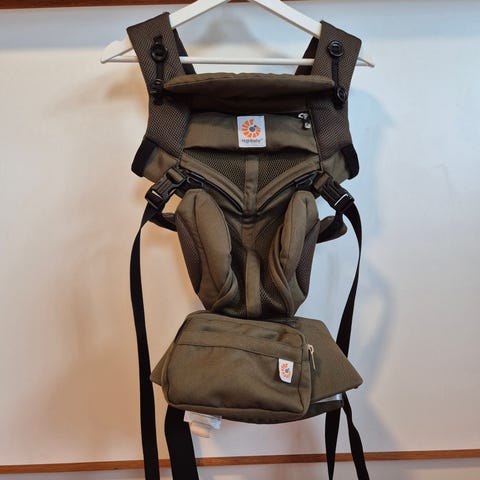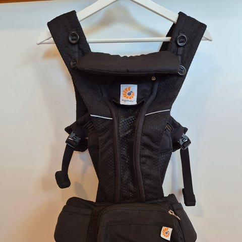 Ergobaby Omni 360 Cool Air bärsele i färgen Midnight Blue. Modellen är utformad för ergonomisk bärning med flera bärpositioner, inklusive framåtvänt och inåtvänt läge. Selen har vadderade axelremmar, midjebälte med stöd samt justerbara spännen för att kunna anpassas efter både bärare och barn. Materialet är ett luftigt mesh-tyg som ger god ventilation. Lämplig för bärande av spädbarn och småbarn enligt tillverkarens anvisningar.