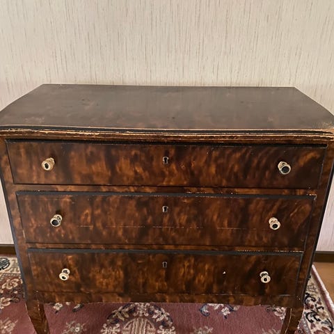En gammal byrå med handtag i mässing. Väldigt vacker och i fint skick!