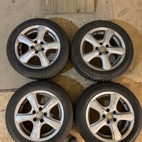 Uniroyal MS Plus 77, 195/65 R15 med M+S och snöflingesymbol. Monterade på snygga Aluett aluminiumfälgar (5-bult). Bra begagnat skick med normalt slitage. minst 5 mm Bara att montera och köra!