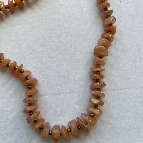 Den har ett litet märke som jag inte riktigt vet vad det är, materialet är troligen glas inte riktig kvarts sten. Passar bra att ha som hänge på halsband eller liknande!