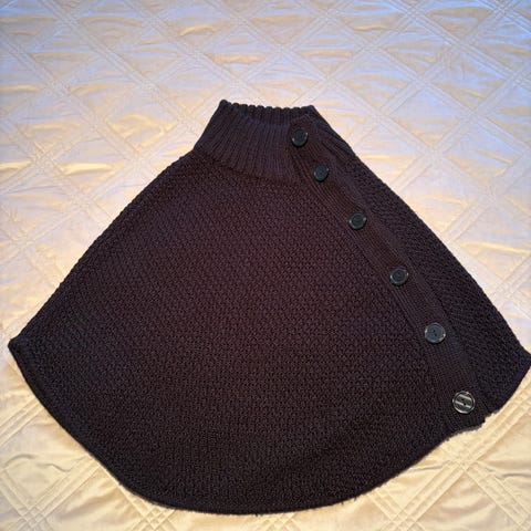 H&M poncho i röd färg, unisexmodell. Storlek one size. Plagget har en enkel, rak form och är avsedd att bäras över andra kläder som ett extra lager. Material- och skötselråd framgår av tvättlappen på plagget. Passar för vardagsbruk och som ett värmande ytterlager vid svalare väder.