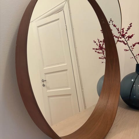 IKEA STOCKHOLM spegel i rund modell med valnötsfärgad träram. Fin spegel som tyvärr inte gör sig till rätta hemma hos mig. Inga skavanker, mycket gott skick.