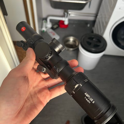 Siktet är ett rödpunktsikte med justeringsknappar ovanpå huset för att reglera ljusstyrkan. Lång tubmodell som passar för montering på vapen med standardfästen för kikarsikten (30mm ringar)