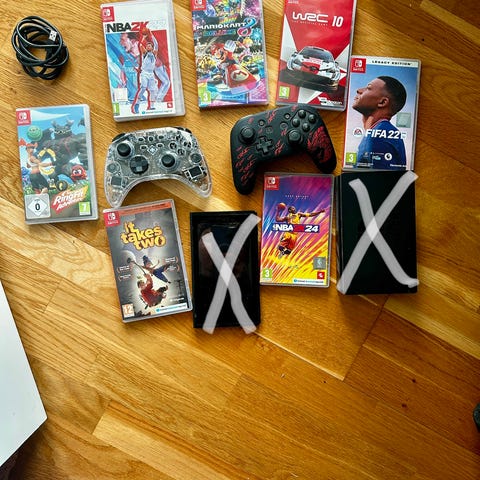 • 4 stycken spel. FIFA 23, Mario party, Minecraft och Mariocart.