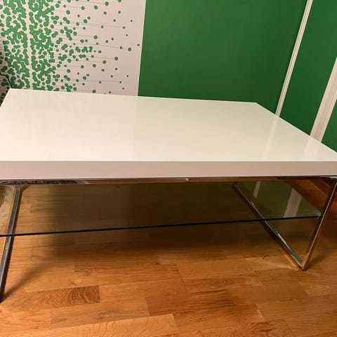 Blank vit laminat med kromat stålstativ. Lite repor men annats fint!