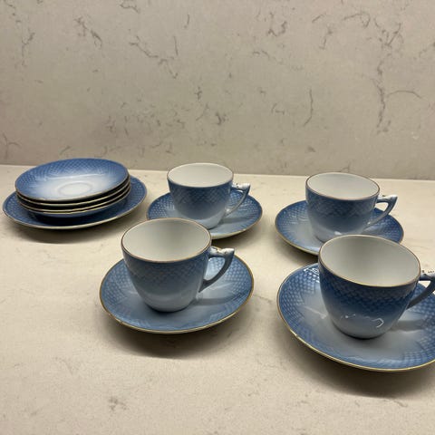 Blå Måsen mocka koppar med fat