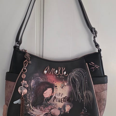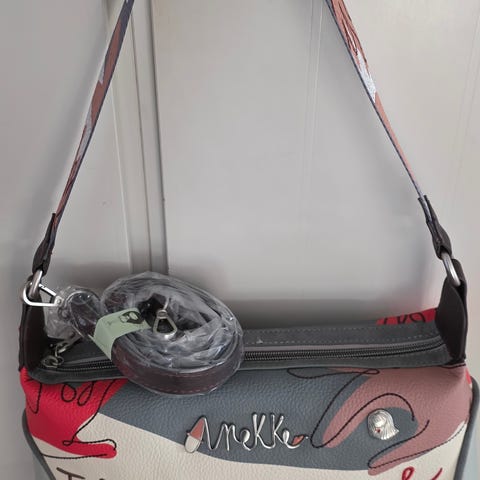 Anekke Stories tygväska för kvinna. Väskan är tillverkad i tyg och passar för vardagsbruk, resor eller som accessoar. Modellen har bärhandtag och detaljerad tryckt design på utsidan. Lämplig för förvaring av personliga tillhörigheter som plånbok, mobil och småsaker.