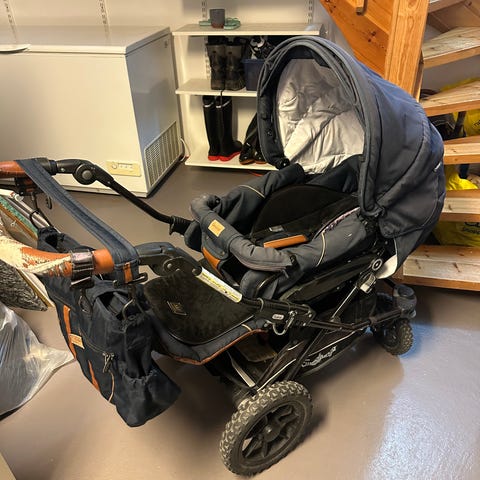 Säljer vår fin fina dubbelvagn då vi inte kan använda den längre då den lilla gärna vill sitta upp och inte ligga i liggdel längre. Köpt begagnad september 2025.