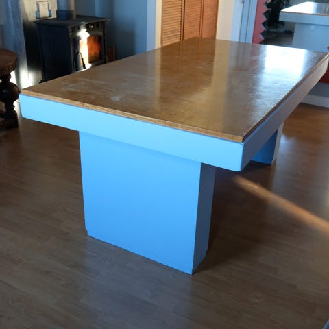Benen och skivan har spår av användning, snygg patina. Skivan med vissa märken och gulnad