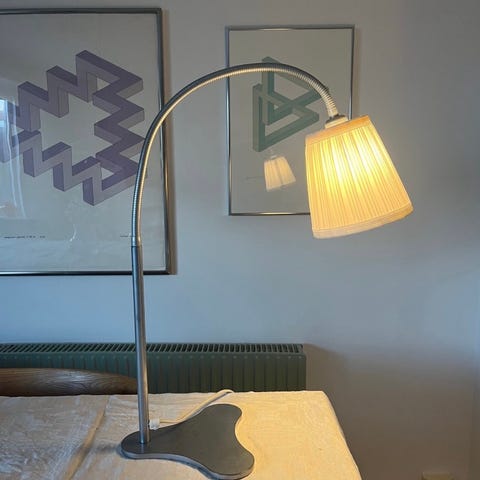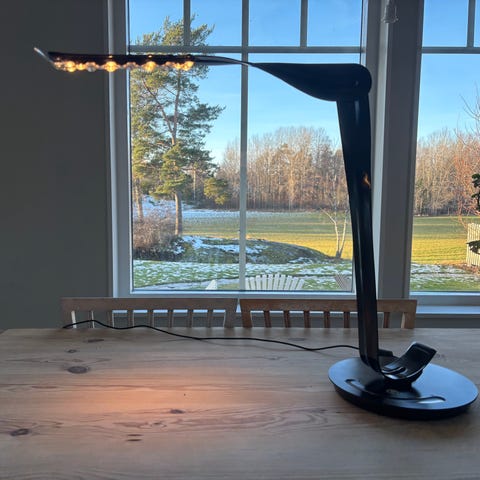 Så fin, stabil (läs tung) bordslampa, 88cm lång, 64cm hög. Väldigt fint skick! En riktig pjäs.